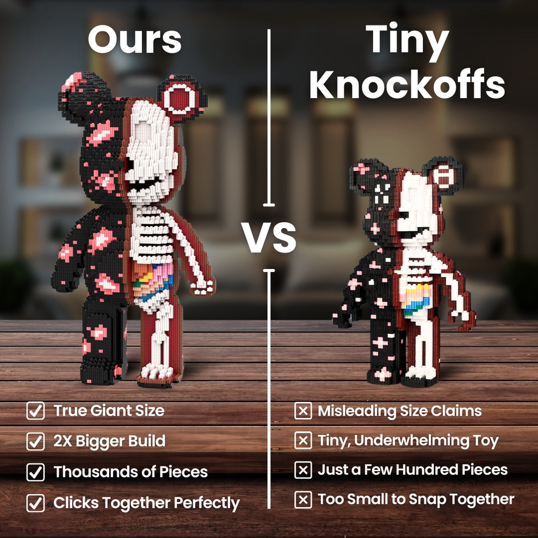 Nos TeddyCraft™ à construire sont composés de 5 000+ micro-pièces, et mesurent tous la même taille finale d'environ 43 cm de haut
